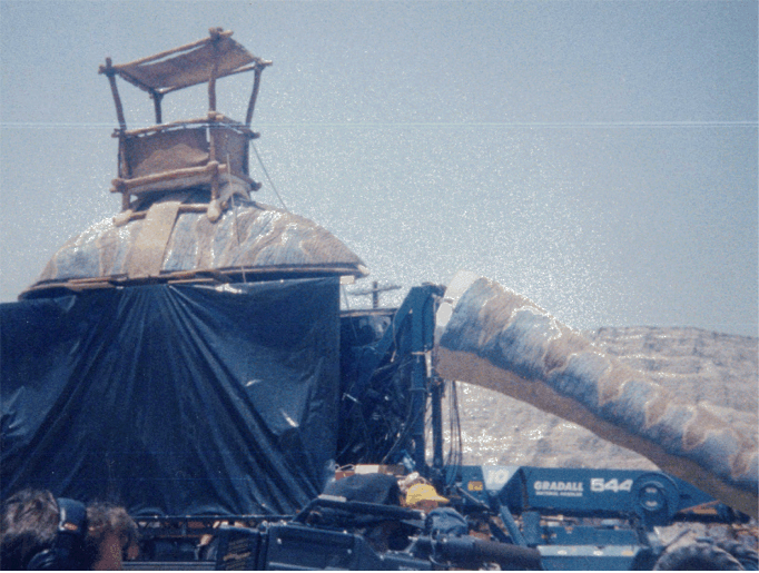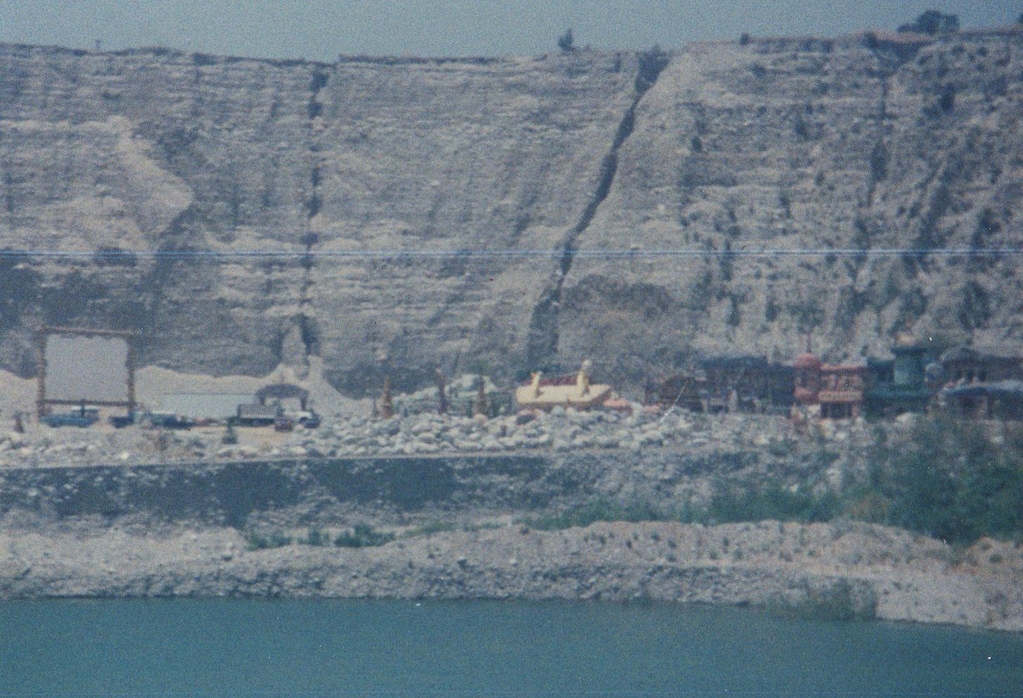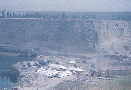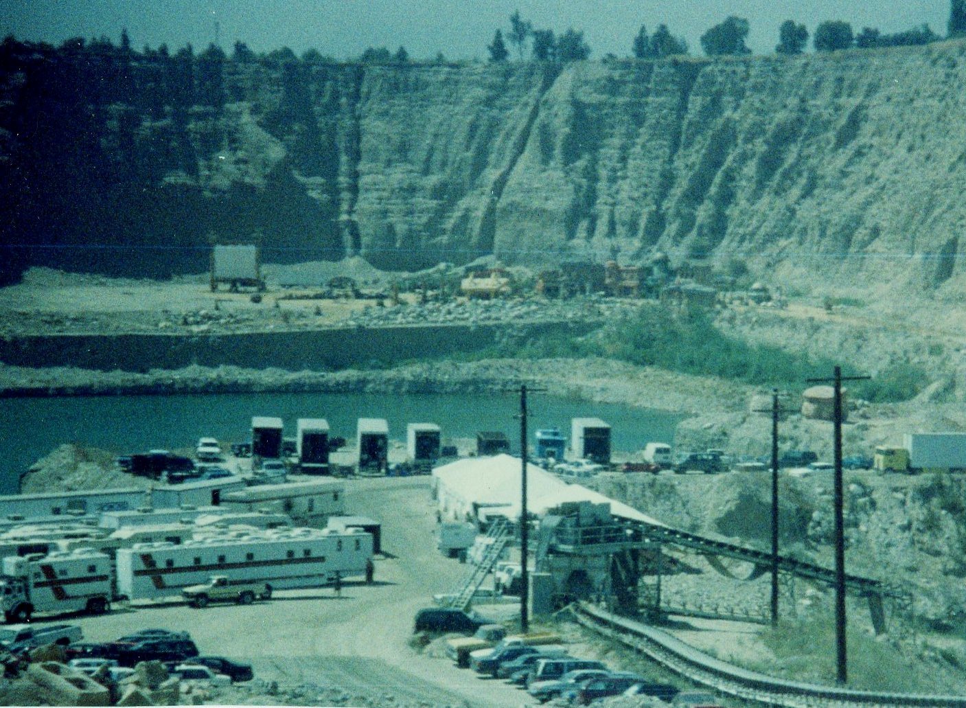 film crew trucks in rock quarry