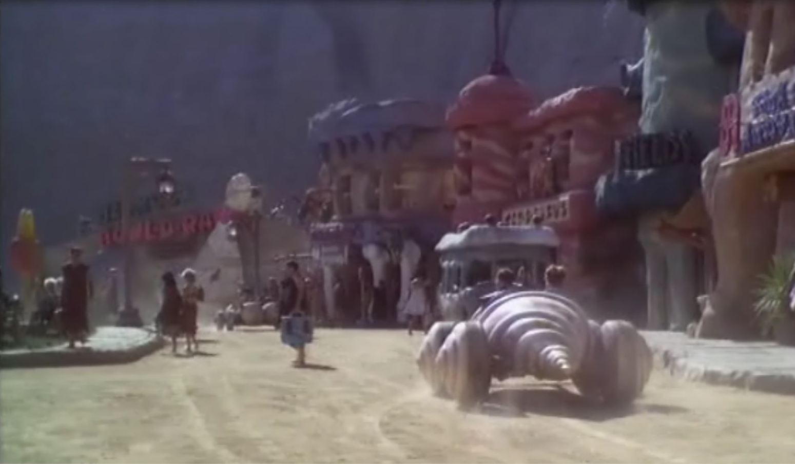 dan ON LEFT CHASING FRED FLINTSTONE IN HIS NEW CAR |