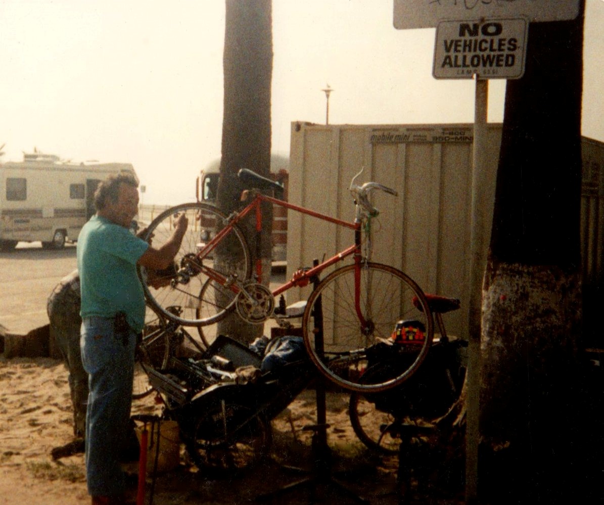 ![]() MY BIKE BEING REPAIRED AT VENICE PIER |