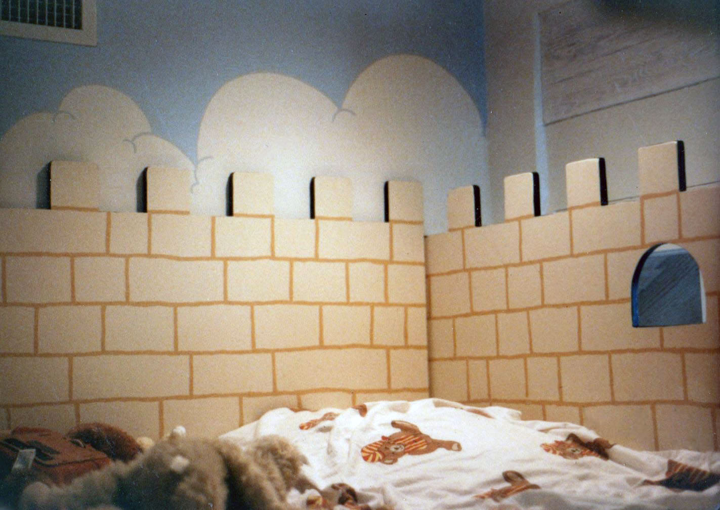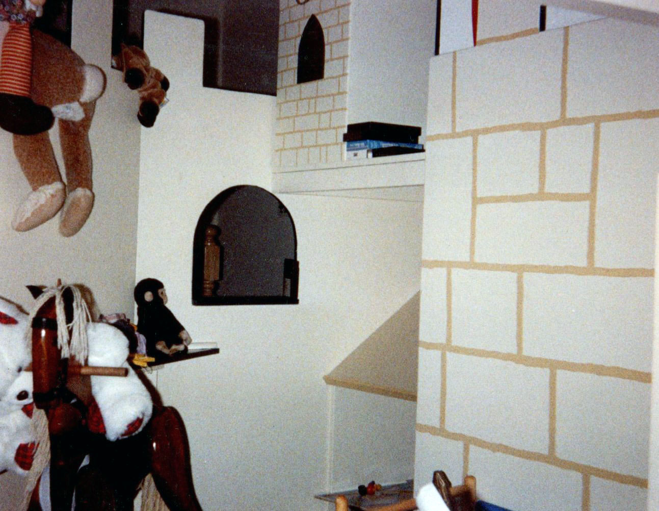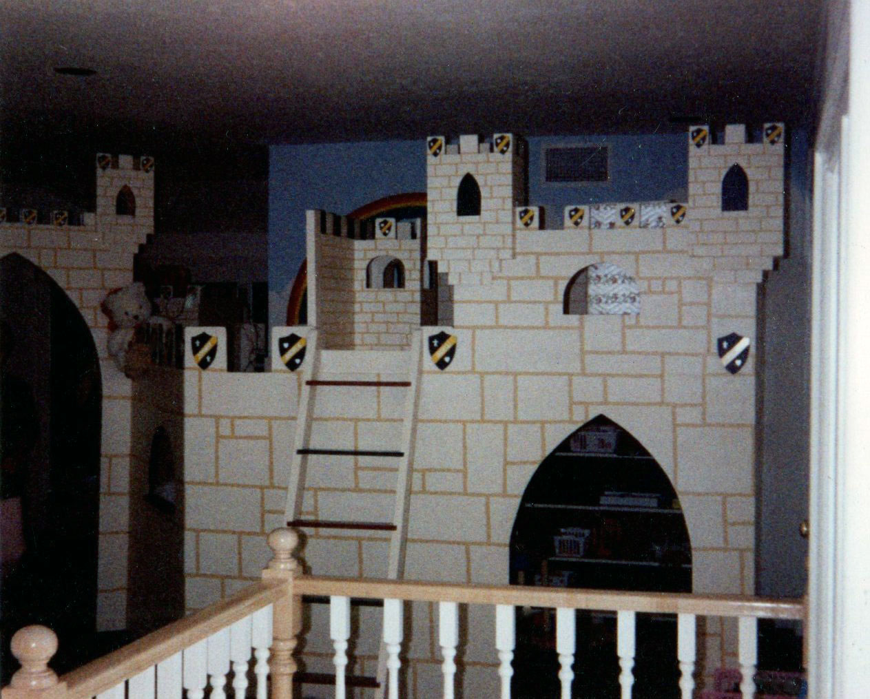 ALL CASTLES ARE CUSTOM MADE AND MEASURED TO FIT SPACE IN ROOM DESIRED. CUSTOM COLORS AND DESIGNS TO MATCH YOUR REQUIREMENTS. CASTLES ARE STURDY AND REQUIRE ATTACHMENT TO ONE WALL FOR SAFETY. ( THEY ARE NOT FREESTANDING ) ALL ARE MADE FROM BIRCH CABINET GRADE PLYWOOD WITH FIR OR PINE SUPPORTS.