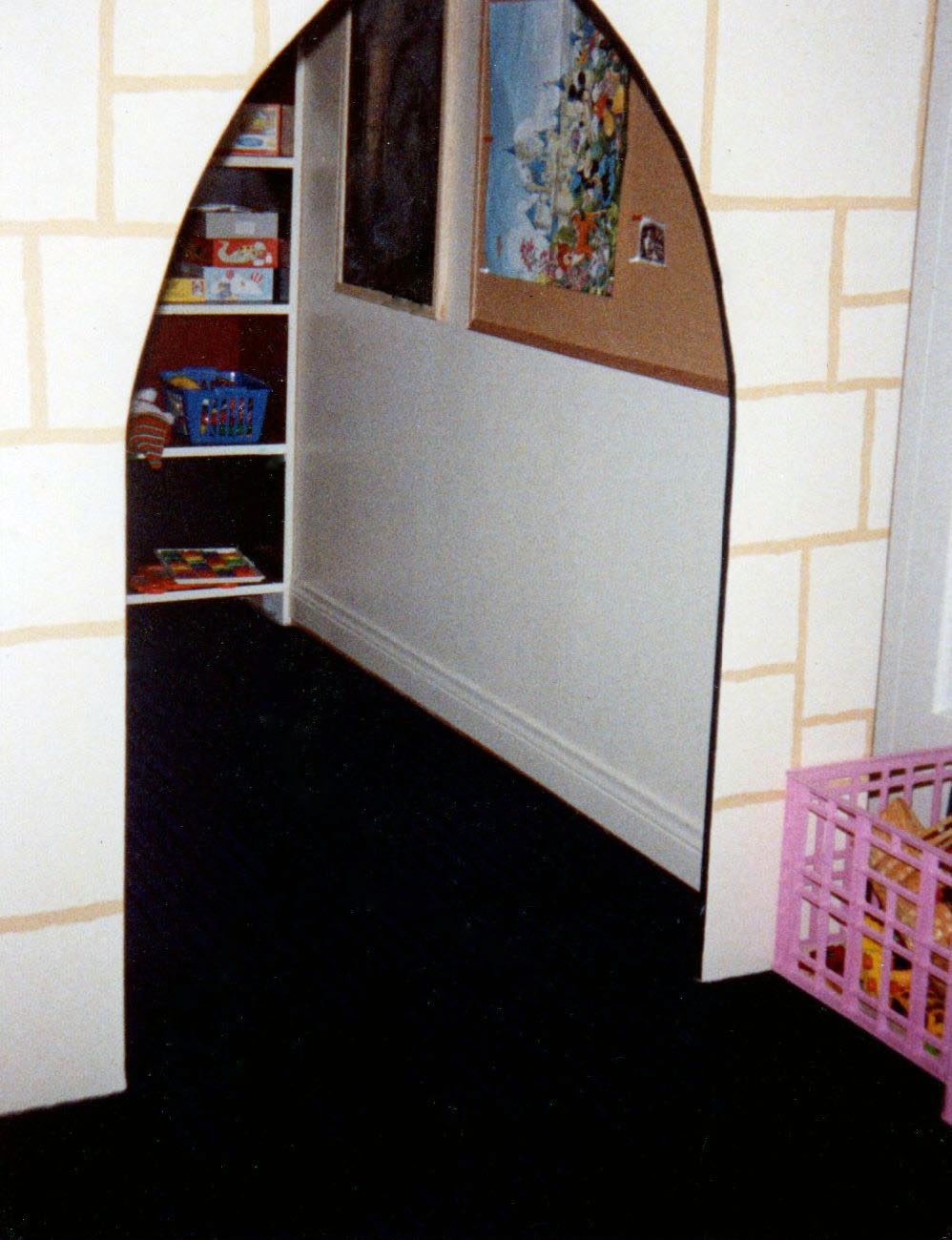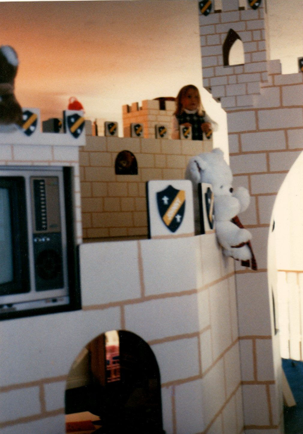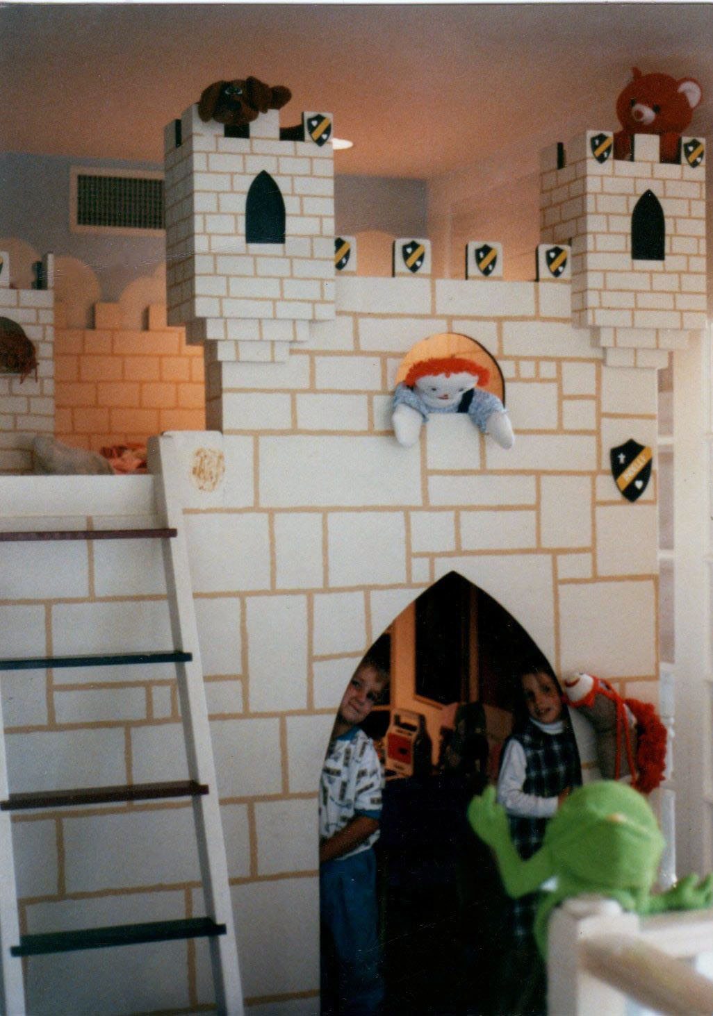 ALL CASTLES ARE CUSTOM MADE AND MEASURED TO FIT SPACE IN ROOM DESIRED. CUSTOM COLORS AND DESIGNS TO MATCH YOUR REQUIREMENTS. CASTLES ARE STURDY AND REQUIRE ATTACHMENT TO ONE WALL FOR SAFETY. ( THEY ARE NOT FREESTANDING ) ALL ARE MADE FROM BIRCH CABINET GRADE PLYWOOD WITH FIR OR PINE SUPPORTS.