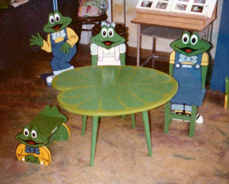 ![]() frog chairs $175 each and lily pad table $125 |
