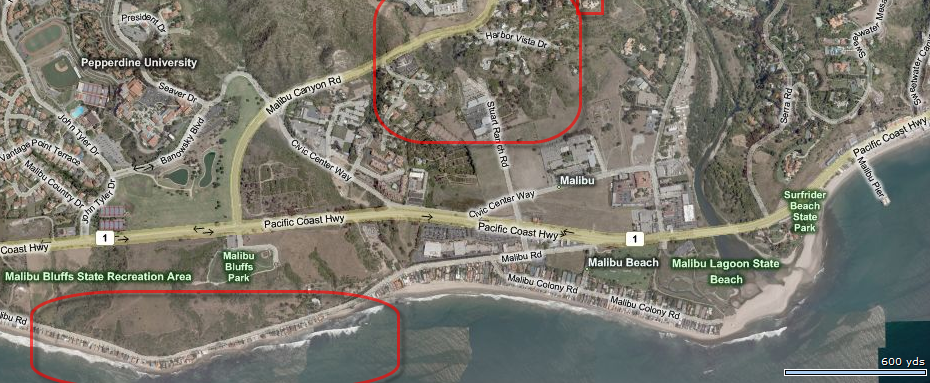 ![]() CASTLE IS IN UPPER RIGHT HAND CORNER I HAVE MANY TIMES WARNED PEOPLE TO NOT CONSIDER LIVING IN HOMES IN THIS AREA ABOVE. THIS AREA HAS BURNED AT LEAST 4 TIMES SINCE 1970, SOME HOMES HAVE BEEN REBUILT THREE TIMES. NOT EVERY HOME HAS BEEN DESTROYED BUT ENOUGH HOMES ON A REGULAR BASIS THAT I WOULD USE MORE CAUTION ON LIVING HERE THAN ANYWHERE ELSE IN MALIBU. THE CASTLE UNTIL NOW HAS ALWAYS SURVIVED, WHILE MANY OF THE HOMES HERE ON THE HILL HAVE NOT. THE VIEW IS INCREDIBLE BUT THE FIRE SAFETY HISTORY IS NOT. THIS AREA ALWAYS BURNS IN THE MALIBU FIRES. ![]() THE HOMES ON THE BEACH WITHIN THIS CIRCLE HAVE RANDOMLY BEEN DESTROYED EVERY MALIBU FIRE. MOST TIMES 1 OR 2 HOUSES BURNED, THE NEXT 4 SAFE, THE NEXT HOUSE BURNED, THE NEXT 2 SAFE AND SO ON. THE UPPER CIRCLE IS THE AREA PICTURED ABOVE AND THE CASTLE IS IN THE LITTLE SQUARE ABOVE. |